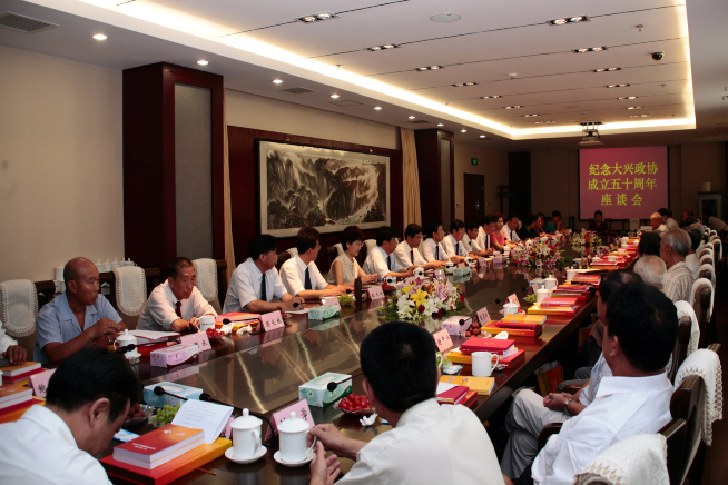 为隆重纪念大兴政协成立50周年,区政协于2007年6月27日上午在政协委员活动中心召开了由历届政协主席、副主席、秘书长和曾荣任20年以上的老政协委员参加的纪念大兴政协成立50周年座谈会。中共大兴区委书记沈宝昌,区委副书记、区长林克庆、区人大主任张书领、区政协主席高树旺、区委副书记孟令华等领导出席会议,并同与会老同志合影留念。会议由区政协主席高树旺主持。