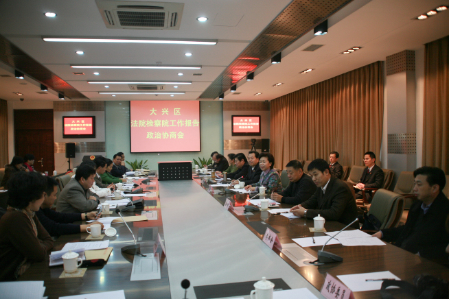 会上,大兴区法院副院长宋玉林、大兴区检察院检察长赵成分别就报告(征求意见稿)向委员们做了说明。委员们就报告(征求意见稿)和“两院”工作踊跃发言,阐述自己的意见,讨论会气氛热烈。委员们对“两院”报告(征求意见稿)和一年来的工作给予了充分肯定。认为,一年来“两院”做了大量工作,为我区营造了良好的法制环境,取得了明显的成效,为经济建设和社会发展起到了保驾护航的作用。“两院”报告(征求意见稿)既总结了工作中取得的成绩,又实事求是地指出了工作中存在的问题,内容翔实、具体。委员们对“两院”工作中关于落实司法为民、提高司法效率、拓宽法制宣传教育渠道、促进社会和谐发展等内容提出了意见、建议,并就具体问题进行了法律咨询。